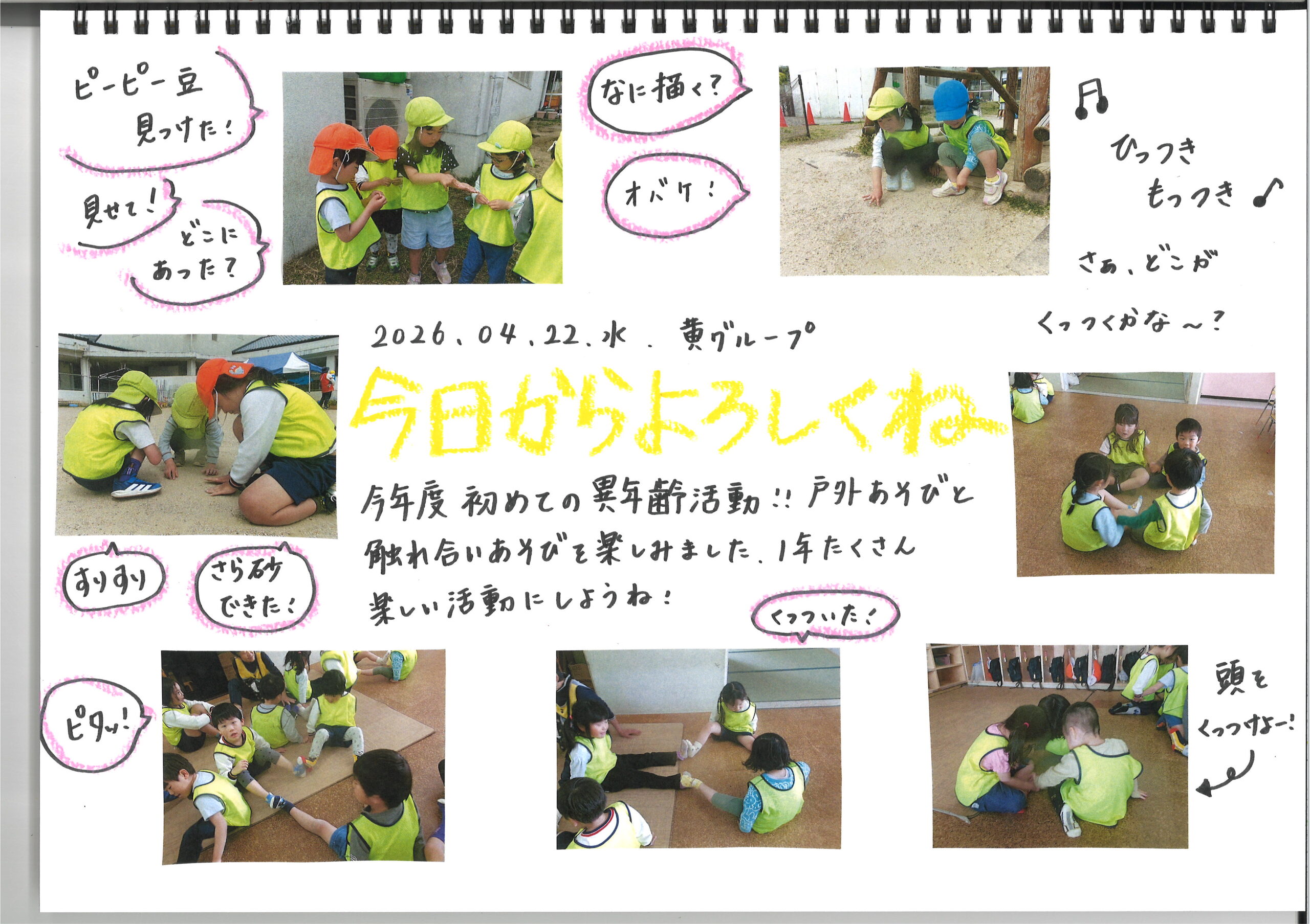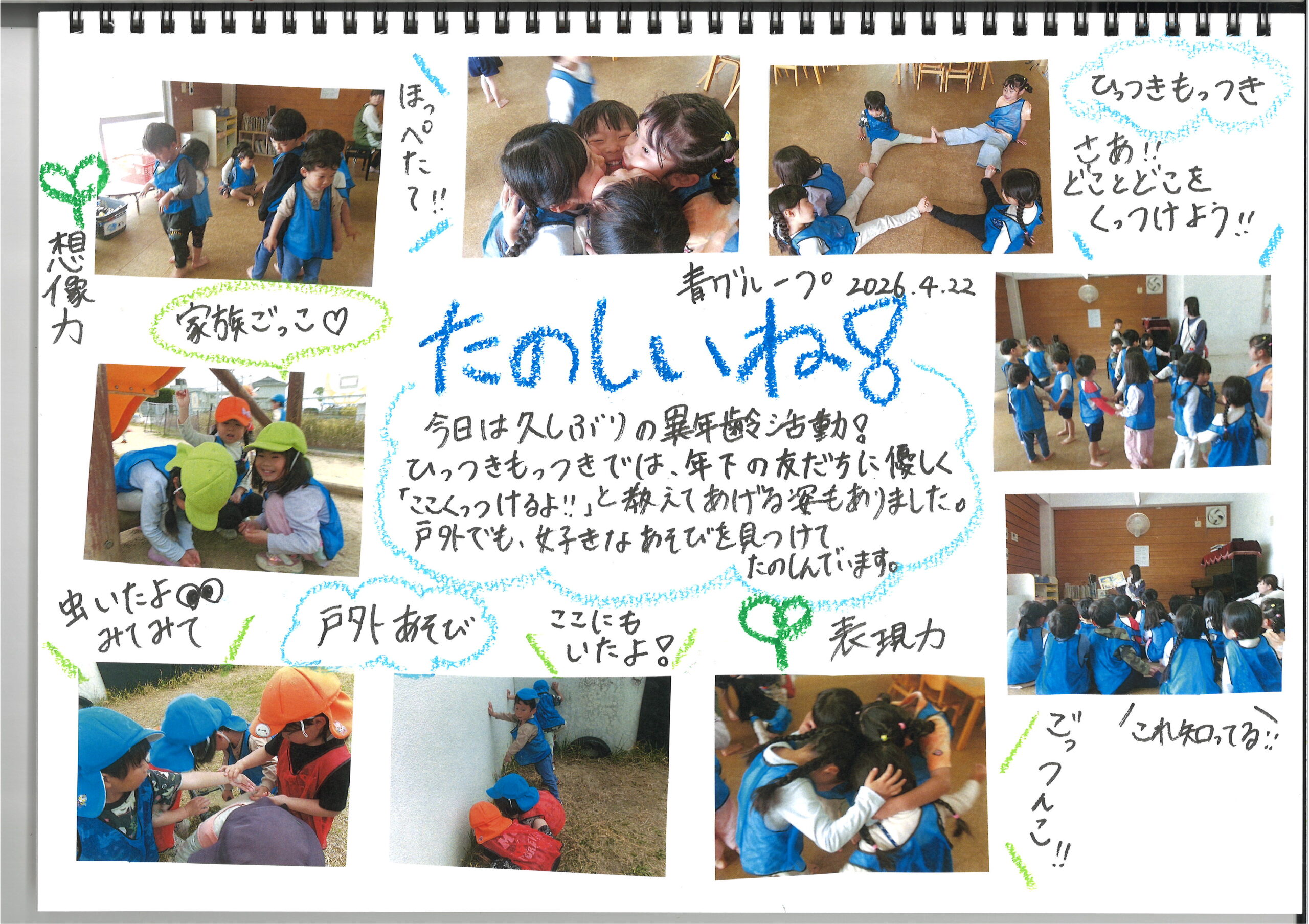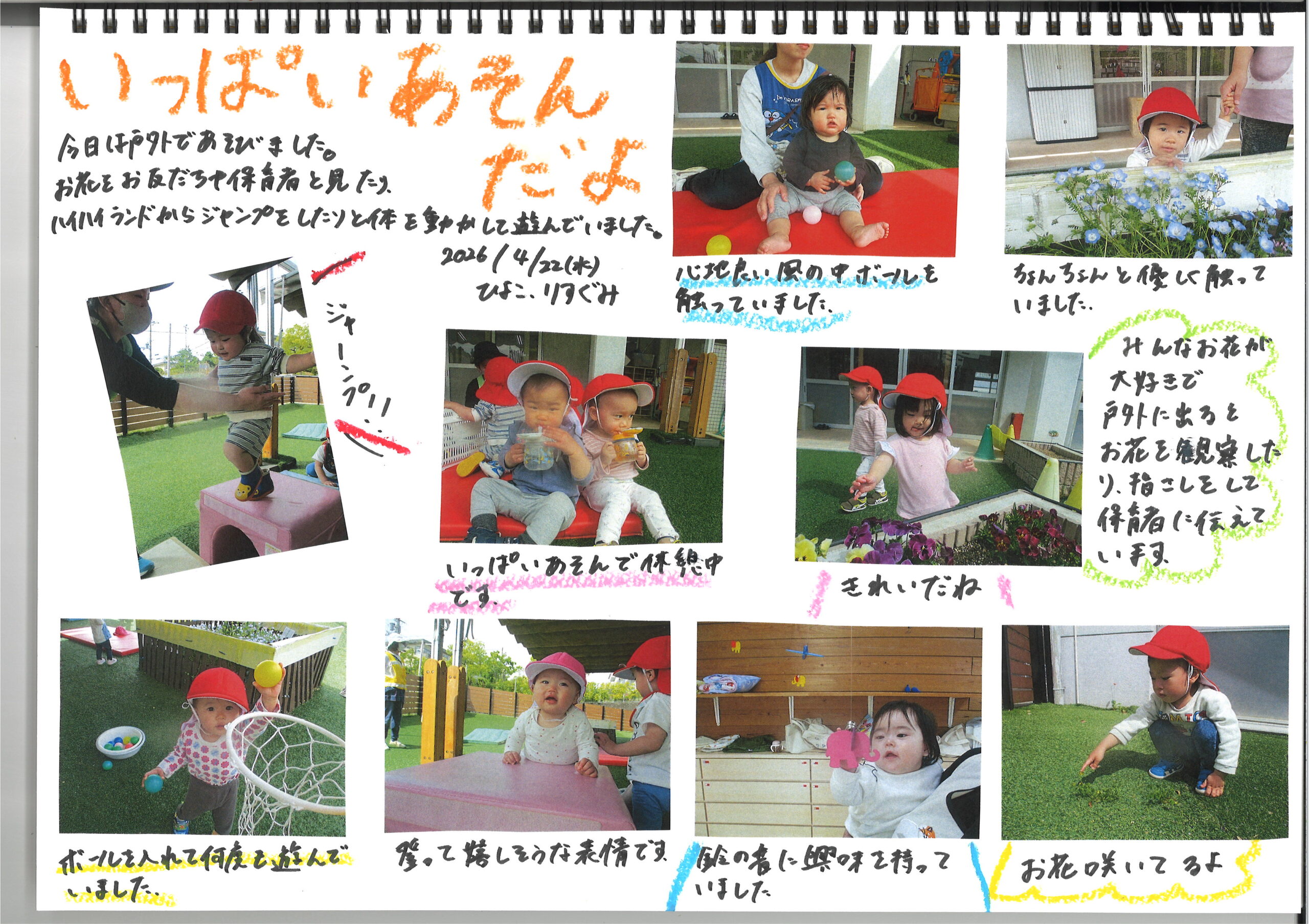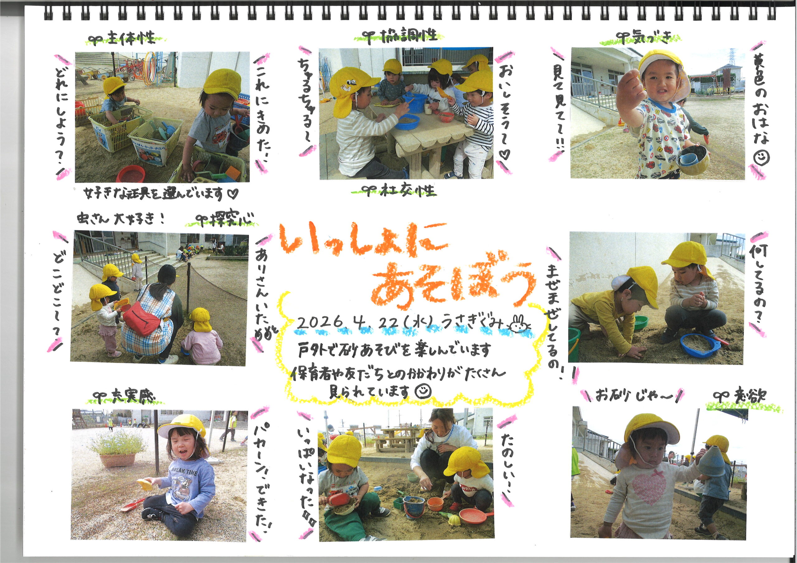 4月22日(水)今日の様子 公開日: 2026年4月22日更新日: 2026年4月22日著者: kabutodaiカテゴリー: 兜台保育園園ブログ ひよこ・りす組 うさぎ組 赤グループ 黄グループ 青グループ 関連記事 11月15日(火)今日の様子 ひよこぐみ きりんぐみ らいおんぐみ 公開日: 2022年11月15日更新日: 2022年11月15日著者: kabutodaiカテゴリー: 兜台保育園園ブログ 6月3日(木)今日の様子 ひよこぐみ りすぐみ うさぎぐみ きりんぐみ ぞうぐみ らいおんぐみ 公開日: 2021年6月3日更新日: 2021年6月3日著者: kabutodaiカテゴリー: 兜台保育園園ブログ 2月18日(水)今日の様子 ひよこ・りす組 うさぎ組 きりん組 ぞう組 らいおん組 公開日: 2026年2月18日更新日: 2026年2月18日著者: kabutodaiカテゴリー: 兜台保育園園ブログ