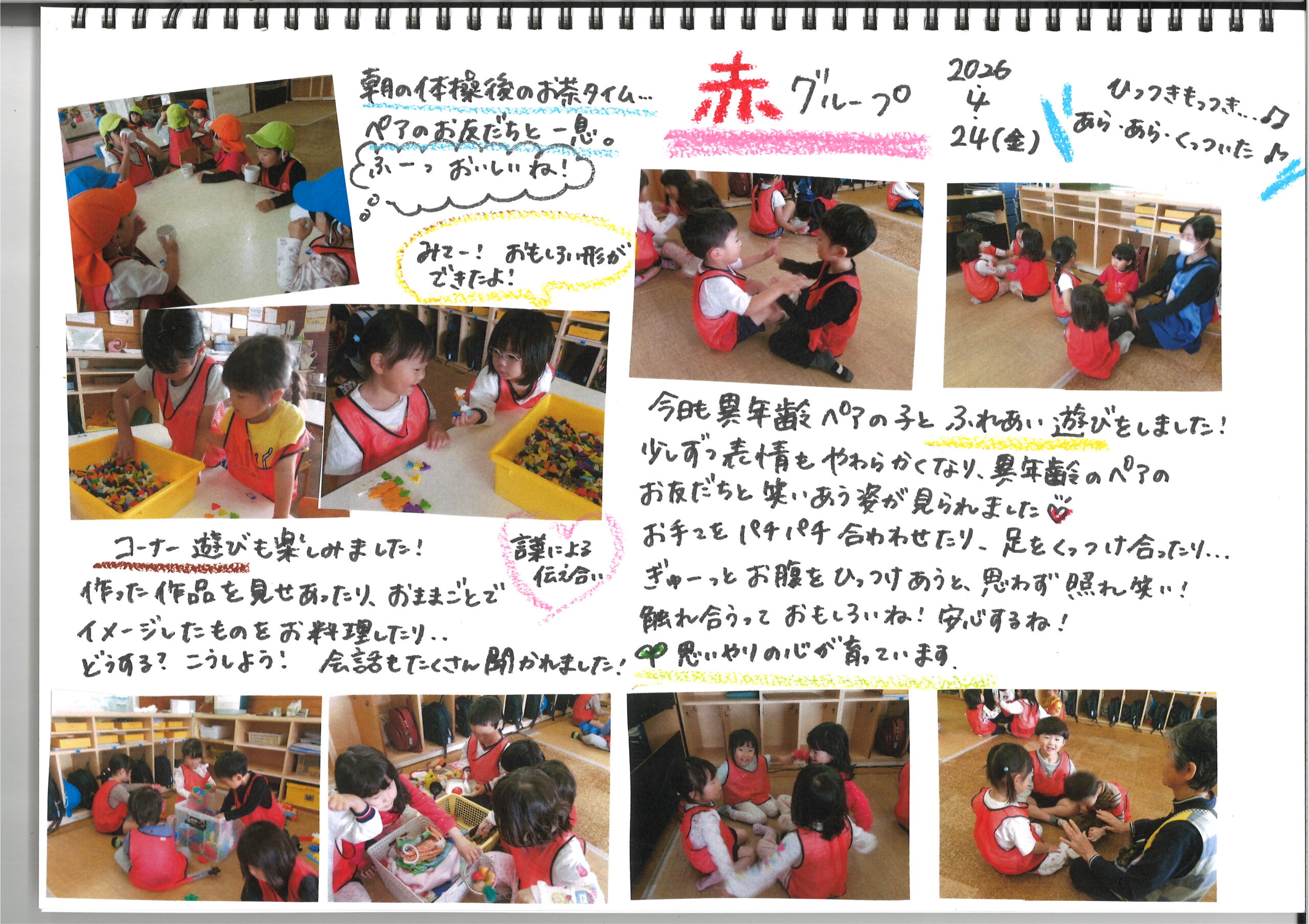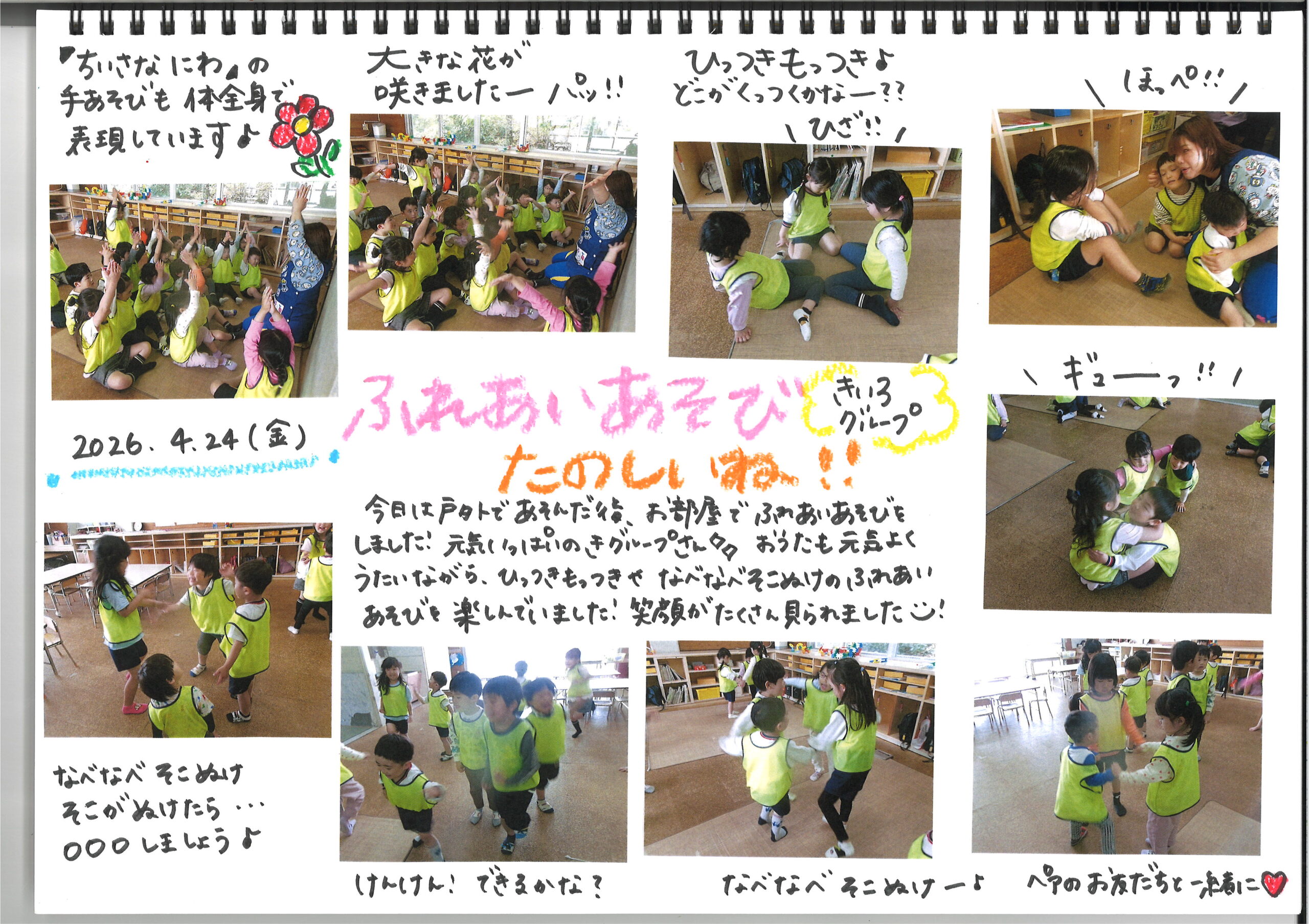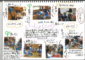4月24日(金)今日の様子 公開日: 2026年4月24日更新日: 2026年4月24日著者: kabutodaiカテゴリー: 兜台保育園園ブログ ひよこ・りす組 うさぎ組 異年齢 赤グループ 異年齢 青グループ 異年齢 黄グループ 関連記事 12月15日(木)今日の様子 ひよこ りすぐみ うさぎぐみ きりんぐみ ぞうぐみ らいおんぐみ 公開日: 2022年12月16日更新日: 2022年12月16日著者: kabutodaiカテゴリー: 兜台保育園園ブログ 2月26日(月)今日の様子 ひよこぐみ りすぐみ うさぎぐみ きりんぐみ ぞうぐみ らいおんぐみ 公開日: 2024年2月27日更新日: 2024年2月27日著者: kabutodaiカテゴリー: 兜台保育園園ブログ 12月16日(火) 今日の様子 ひよこ・りす組 うさぎ組 きりん組 ぞう組 らいおん組 公開日: 2025年12月16日更新日: 2025年12月16日著者: kabutodaiカテゴリー: 兜台保育園園ブログ