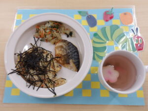 4月24日(金) 公開日: 2026年4月24日更新日: 2026年4月24日著者: kabutodaiカテゴリー: 兜台保育園給食献立 主食・・・五目鶏そぼろごはん 主菜・・・鯖の塩焼き 副菜・・・おかか和え お汁・・・すまし汁 関連記事 1月29日(水) 主食・・・麦ご飯 主菜・・・牛肉の金平ごぼう 副菜・・・甘酢和え お汁・・・みそ汁 公開日: 2020年1月29日更新日: 2020年1月29日著者: kabutodaiカテゴリー: 兜台保育園給食献立 6月9日(木) 主食・・・ごはん 主菜・・・タラのカレーパン粉焼き 副菜・・・ごぼうサラダ お汁・・・みそ汁 デザート・・・パイン 公開日: 2022年6月9日更新日: 2022年6月9日著者: kabutodaiカテゴリー: 兜台保育園給食献立 9月13日(月) 主食・・・ごはん 主菜・・・高野豆腐と野菜の煮物 副菜・・・ほうれん草のおかか和え お汁・・・そうめん汁 公開日: 2021年9月13日更新日: 2021年9月13日著者: kabutodaiカテゴリー: 兜台保育園, 兜台保育園給食献立