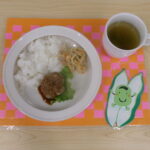 主食・・・ごはん 主菜・・・デミソースハンバーグ 副菜・・・ごぼうサラダ お汁・・・コンソメスープ 乳酸菌飲料